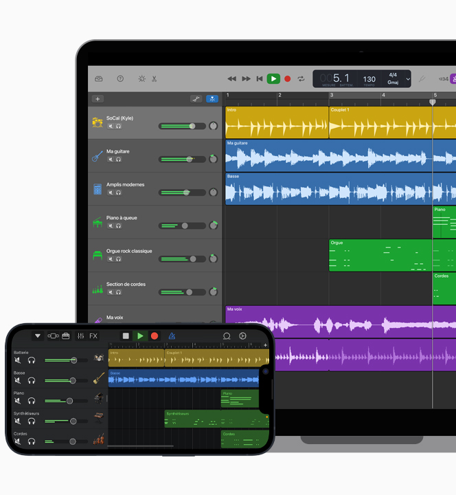 Transformez votre iPhone, iPad ou Apple Watch en enregistreur portatif. Superposez des enregistrements audio, ajoutez des voix à vos ébauches musicales et importez tout dans Logic Pro.