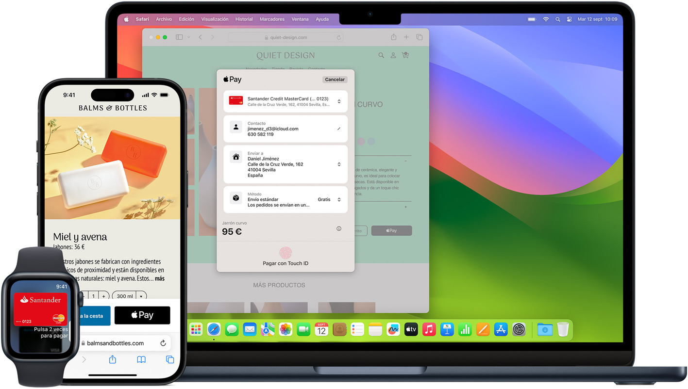 Puedes usar Apple Pay para comprar en tiendas, páginas web y apps. Está muy extendido y es supersencillo, seguro y privado.