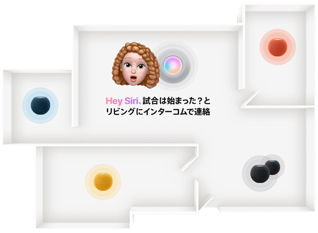 パワフルなオーディオを家のあらゆる場所で楽しむ方法は、この上なくシンプル。どこにいても、どのHomePod miniからでも、完璧にコントロールできます。さらにHomePod miniはあなたのApple製デバイスと連係するので、インターコムなどの機能を使って、すばやく声でやり取りでき