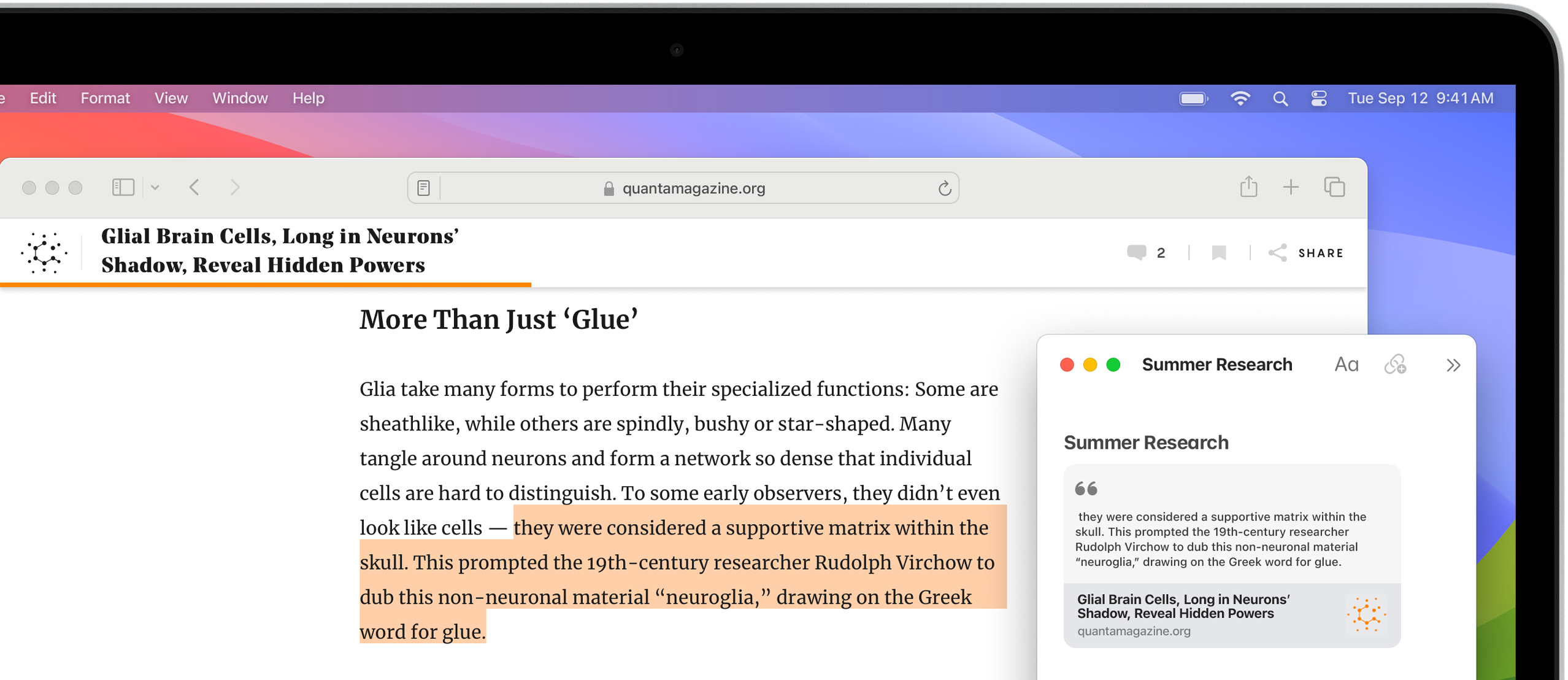 WebKit está profundamente integrado entre el hardware de la Mac y macOS, por lo que Safari puede alcanzar la mayor velocidad de rendimiento y duración de la batería en comparación con cualquier otro navegador en la plataforma. Además, es compatible con estándares web modernos para disfrutar experiencias de navegación increíbles. WebKit en macOS Sequoia optimiza la navegación para que tu experiencia sea aún mejor, y da a los desarrolladores más control sobre el estilo y el diseño para crear contenidos más atractivos.
