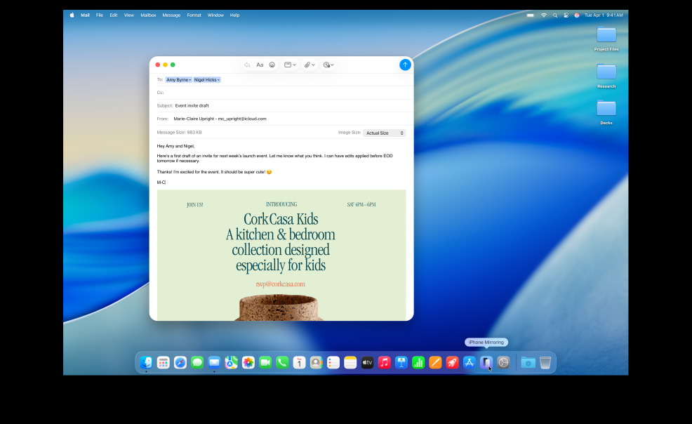Mac, iPhone, iPad, and Apple Watch are amazing on their own. And they’re even more amazing when used together. Thanks to Continuity, your devices work together seamlessly — unlocking a world of powerful features. Start an email on your Mac and finish it on your iPad. Snap a photo on your iPhone and see it appear on your Mac. Or make a call without reaching for your iPhone.1 That’s the magic of Continuity.