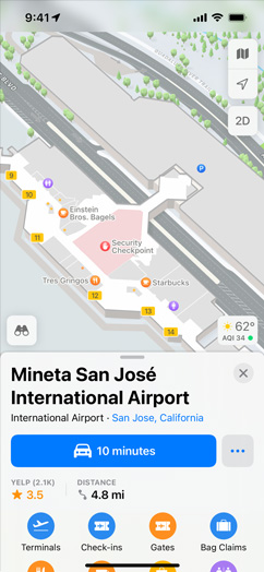 It’s quick and easy to find just what you’re looking for in Maps. Use ultra-targeted filters to search for restaurants by cuisine, price range, and whether they offer takeout. Or choose to see only places that are open right now. Want to broaden your search? Just move the map, and your search results update automatically. Want something closer to home? Tap Nearby to find local places in categories like Restaurants, Gas Stations, Coffee, Hotels, Bars, Fast Food, Groceries, and Shopping Centers. Locations are displayed on the map with colorful badges, making it even easier to pinpoint your picks.