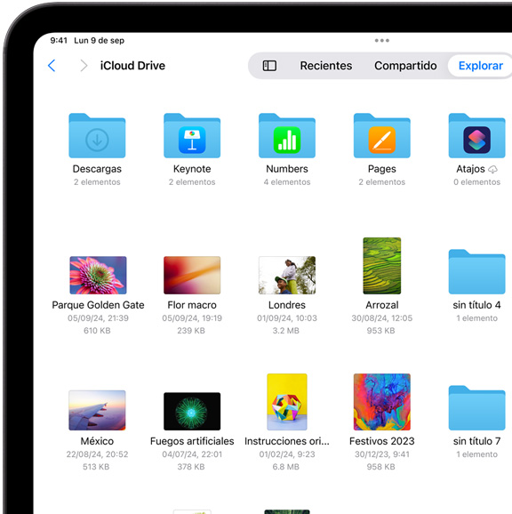 iCloud Drive te ayuda a acceder y compartir fácilmente los archivos y carpetas que has guardado, sin importar el dispositivo que uses. Accede a todo el contenido desde la app Archivos en iOS y iPadOS, el Finder en la Mac, el Explorador de Archivos en una PC con Windows o directamente en el sitio iCloud.com.