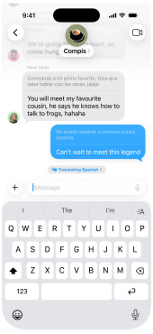 Turn on Live Translation to automatically translate texts in Messages1, display live translated captions in FaceTime and get spoken translations for calls in the Phone app.2