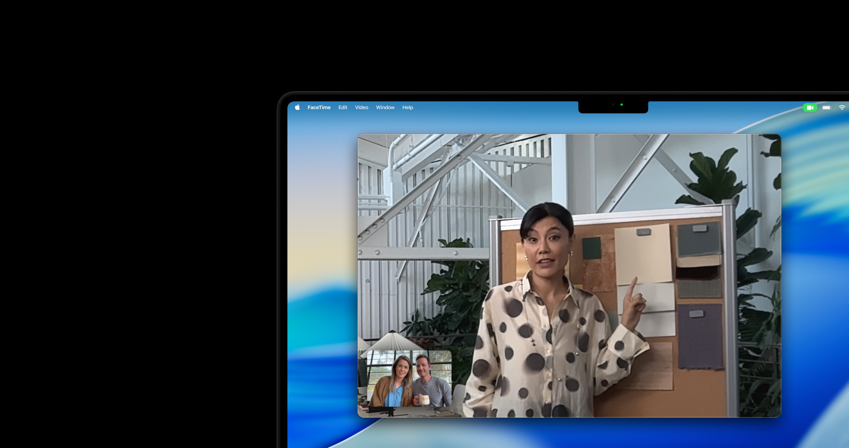 Camera. The 12MP Center Stage camera keeps you in frame as you move around. And Desk View lets you share your workspace.