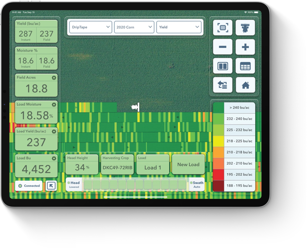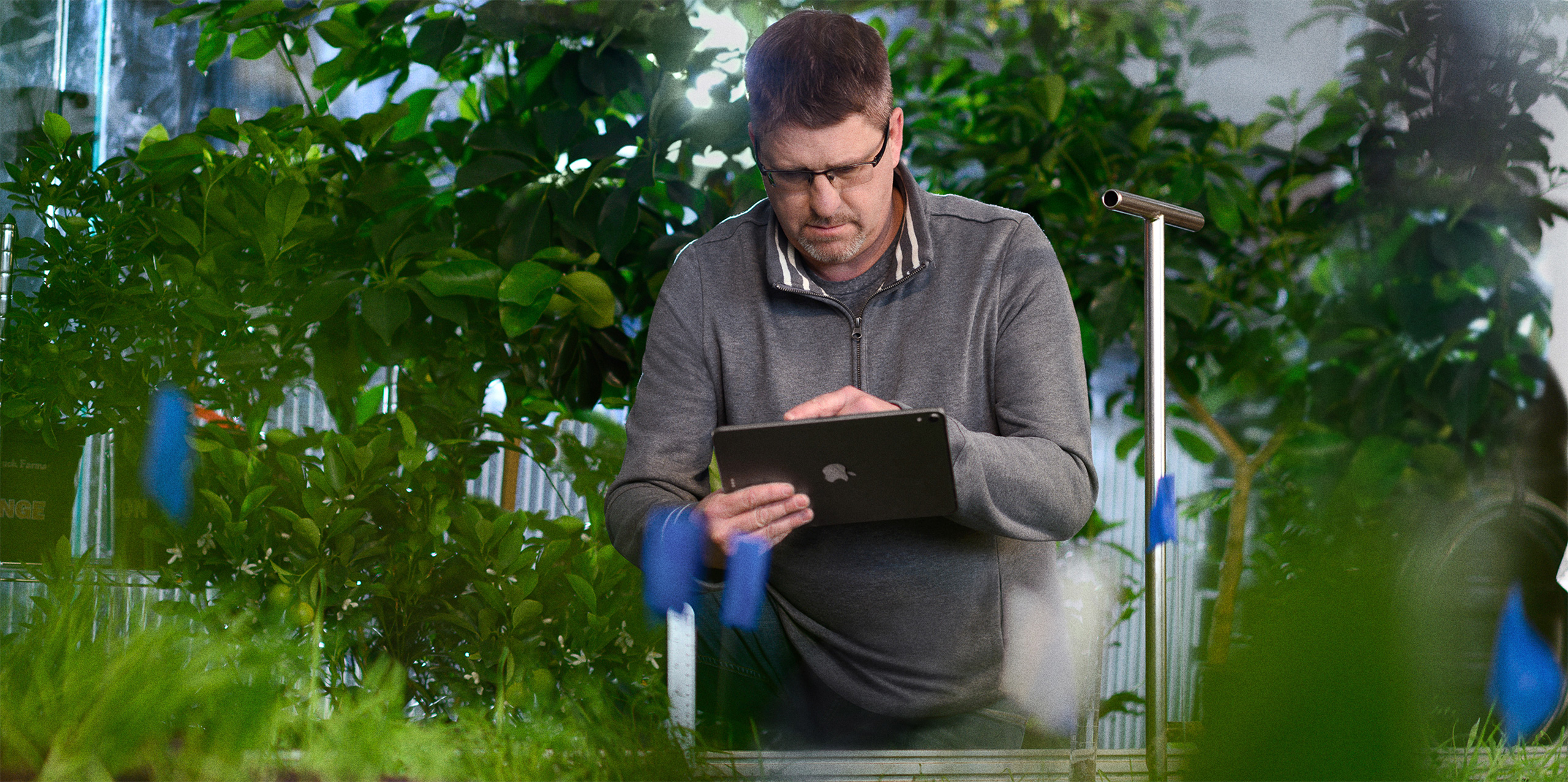 iPad Pro. Bergsma tohum atmadan hasada kadar sulama ve gübreleme dahil tüm tarımsal araştırma verilerini iPad Pro’da Climate FieldView gibi uygulamalarla topluyor, takip ediyor ve ölçüyor.