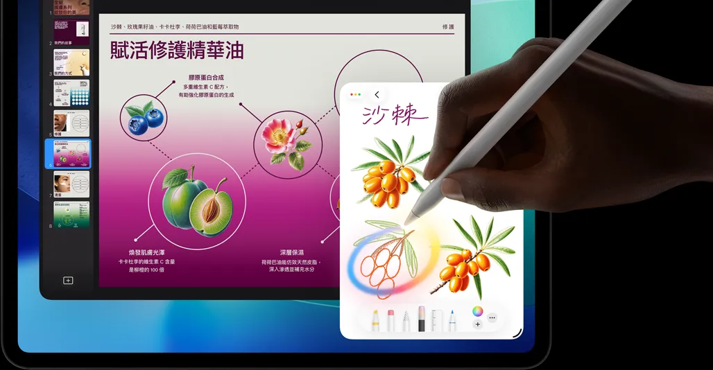 此外,Apple Pencil Pro 增添更多功能,讓你呈現奇思妙想,比以往更生動1。